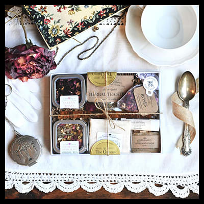We carry their tea gift sets, lavender and rose sachets, single bag teas, tea balls and reusable tea bags
