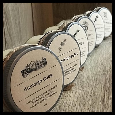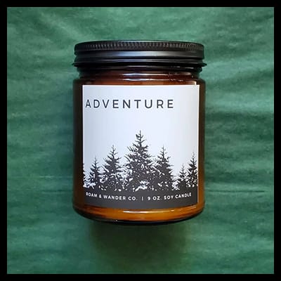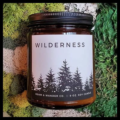 Roam + Wander Co's soy candles are hand poured in Colorado Springs, and have no additives, no blends, pure 100% soy wax. Minimal and modern outdoorsy style with a warm amber toned glass jar, black metal lid, and a simple attractive label featuring the silhouette of evergreen trees, and the scents are highly concentrated to fill your home.